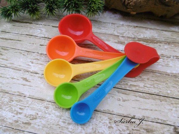 Praktické barevné odměrky - sada 5 ks o různých objemech.