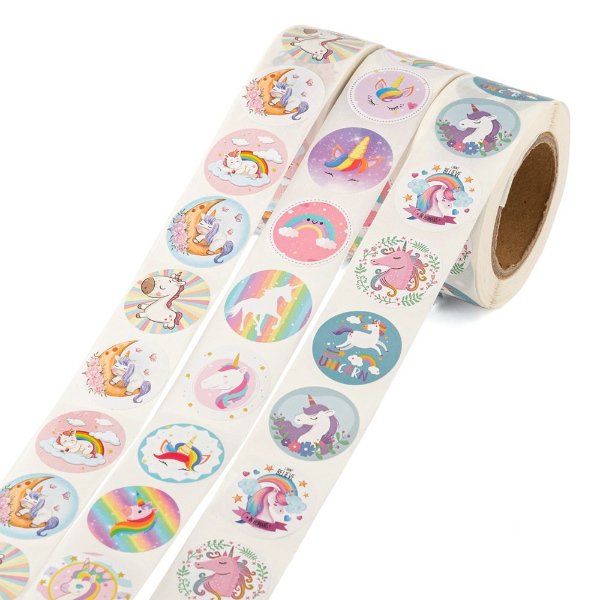 Samolepící etikety s motivem jednorožců.