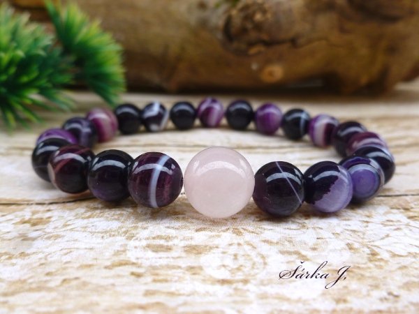 náramek se sílou přírody - Achát fialový + růženín