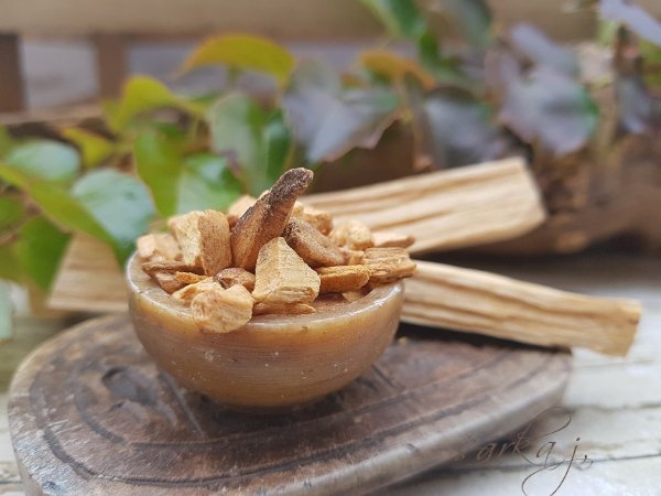 Palo santo neboli svaté dřevo v podobě drobných úlomků.