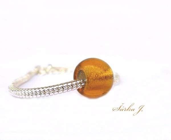Skleněné perle průměr 12 mm velkodírové , dírka 5 mm, barva medová (topaz), stříbro uvnitř perle vytváří zlatý efekt.