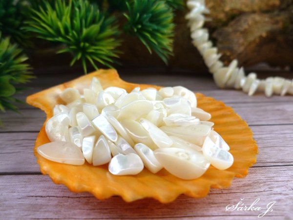 Cena uvedena za 10 gramů - cca 37 kusů vrtaných zlomků perleti.