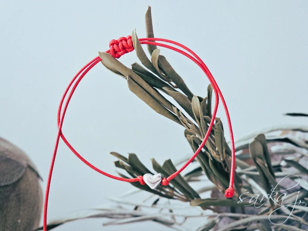 Minimalistický provázkový náramek se srdíčkem ve stříbrné barvě.