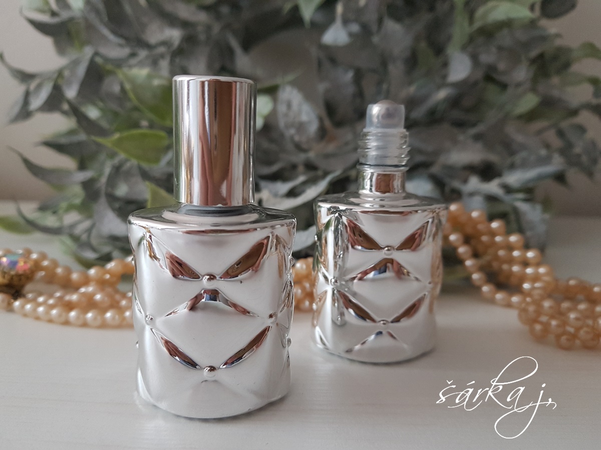 Skleněný roll-on v barvě zatónovaného UV skla - galvanicky pokoveného v barvě stříbra, s ocelovou aplikační kuličkou.
