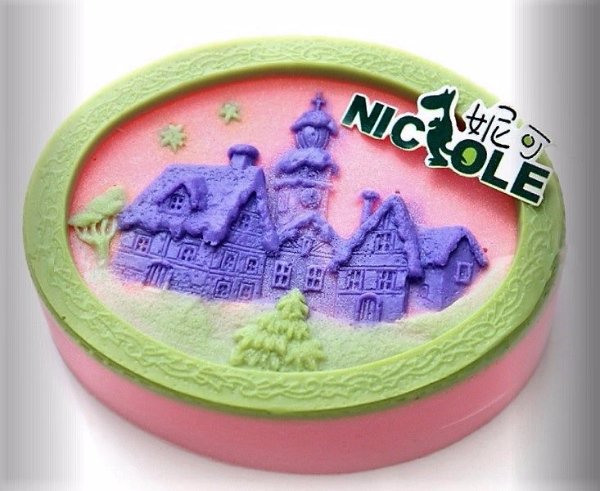 silikonová forma k odlévání - VESNIČKA S KOSTELÍČKEM