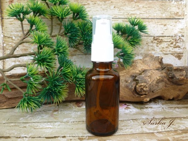 - skleněná lahvička s pumpičkovým dávkovačem - hnědá