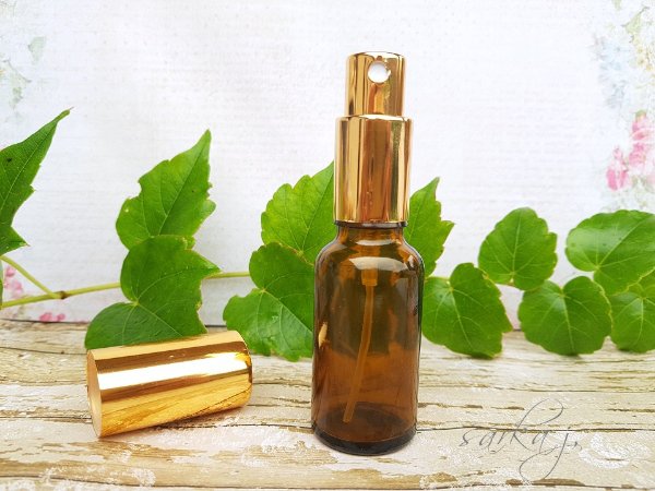 sklo lahvička se zlatým rozprašovačem45 Kč