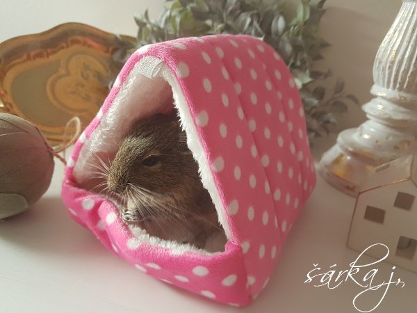 Hebounký pelíšek - domeček pro osmáky nebo jiné drobné hlodavce - křečky, pískomily, ... -.